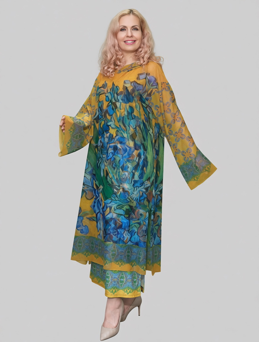 Возможен вариант комплекта с платьем-майкой, где нанесён тот же самый принт. Такое сочетание создаёт интересный 3D эффект при движении.
